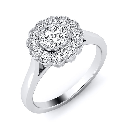 18ct Gold Brilliant Cut Lab Grown Diamond Ring with Trillion Cut Side Stones