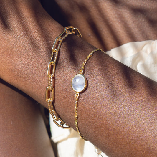 Antigua Gemstone Chain Bracelet 18ct Gold Plated, Moonstone