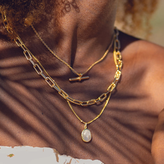 Antigua Gemstone Pendant Necklace 18ct Gold Plated, Moonstone