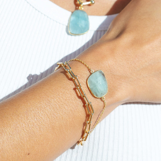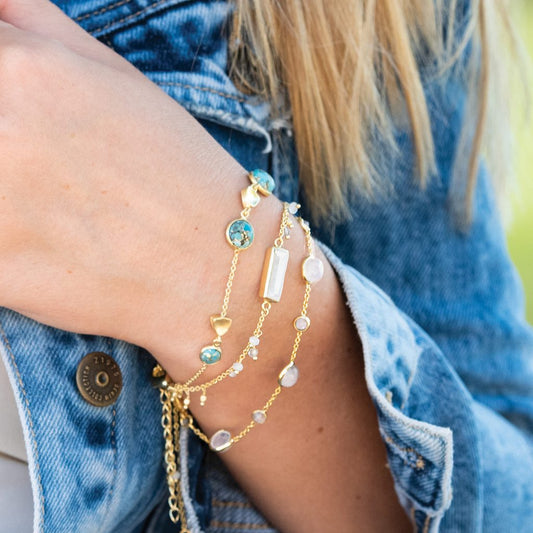 Azores Gemstone Charm Bracelet 18ct Gold Plated, Turquoise