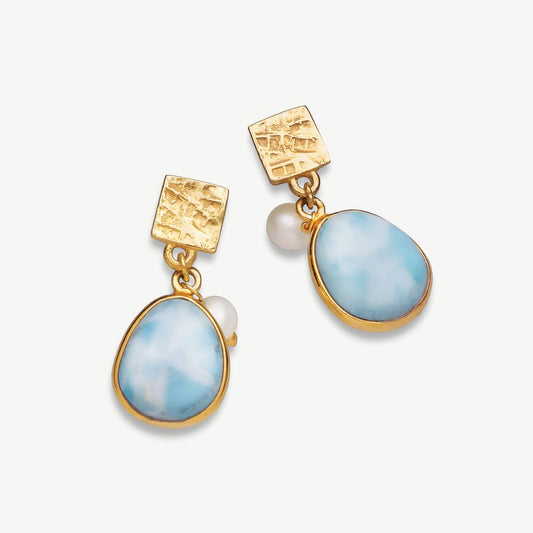 Cool Tides Gemstone Charm Earrings 18ct Gold Plated, Larimar & Pearl