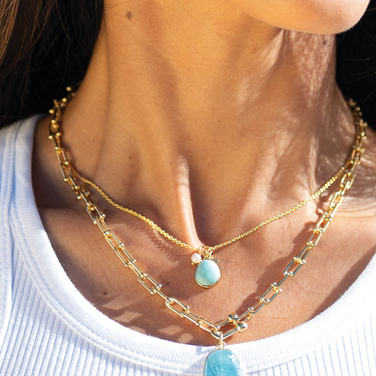 Cool Tides Gemstone Charm Necklace 18ct Gold Plated, Larimar & Pearl