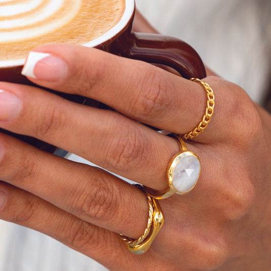 Glacier Oval Gemstone Ring 18ct Gold Plated, Moonstone