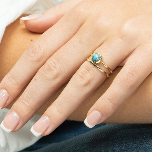 Moon River Dome Gemstone Ring 18ct Gold Plated, Turquoise