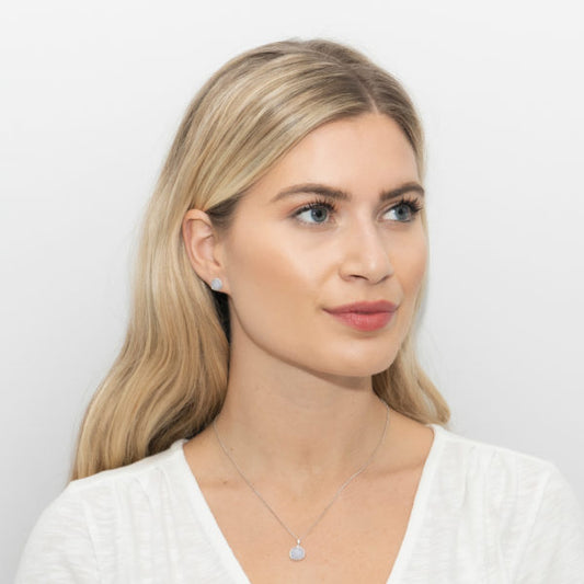 Sea Mist Gemstone Stud Earrings Sterling Silver, Blue Agate