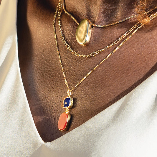 Tokyo Nights Gemstone Pendant Necklace 18ct Gold Plated, Blue Jade & Carnelian