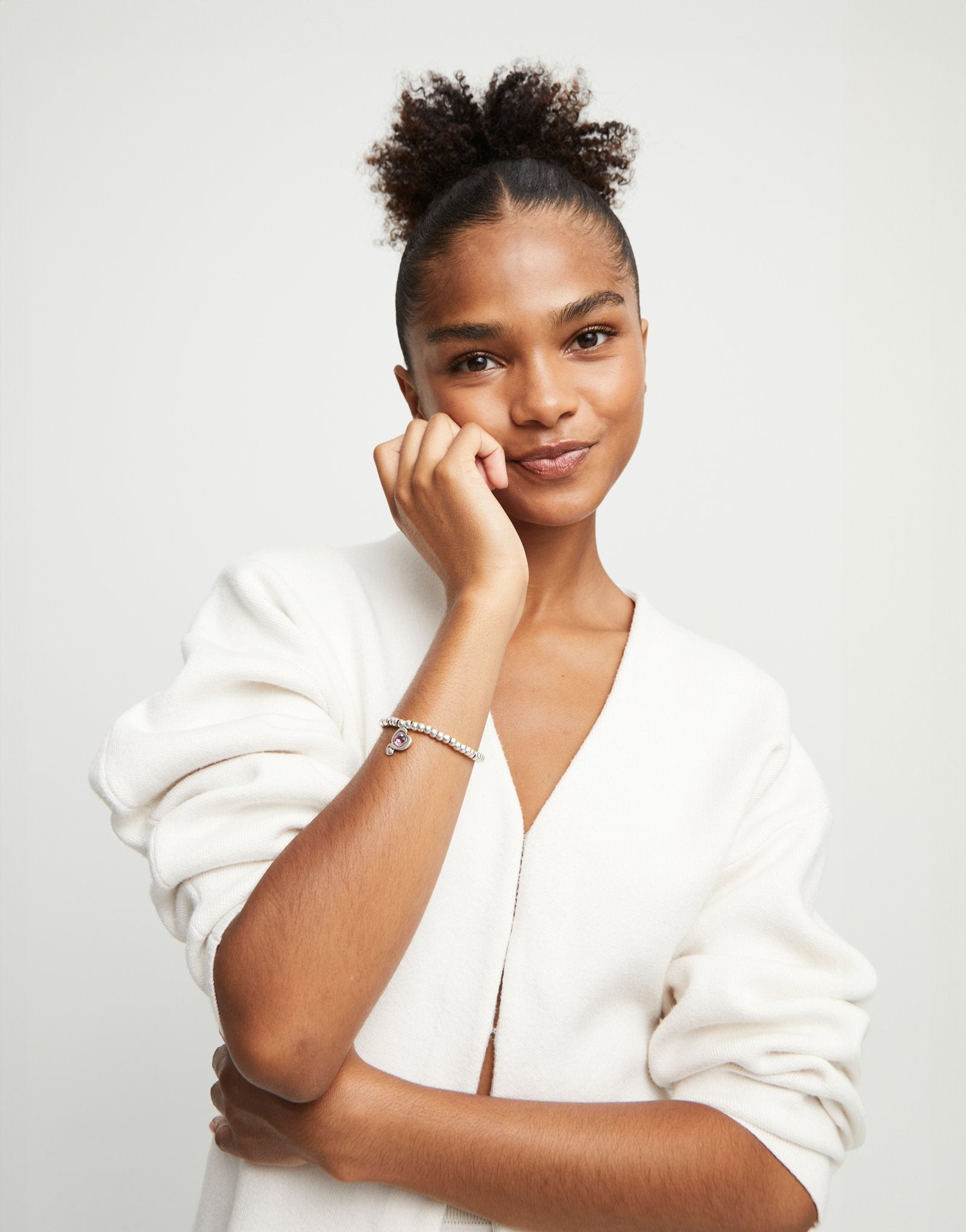 This bead stretch bracelet features a delicate heart charm complemented by a pink crystal accent, combining elegance with everyday wearability. The stretch design ensures a comfortable fit for most wrist sizes, while the carefully selected beads create a subtle yet stylish accessory. I