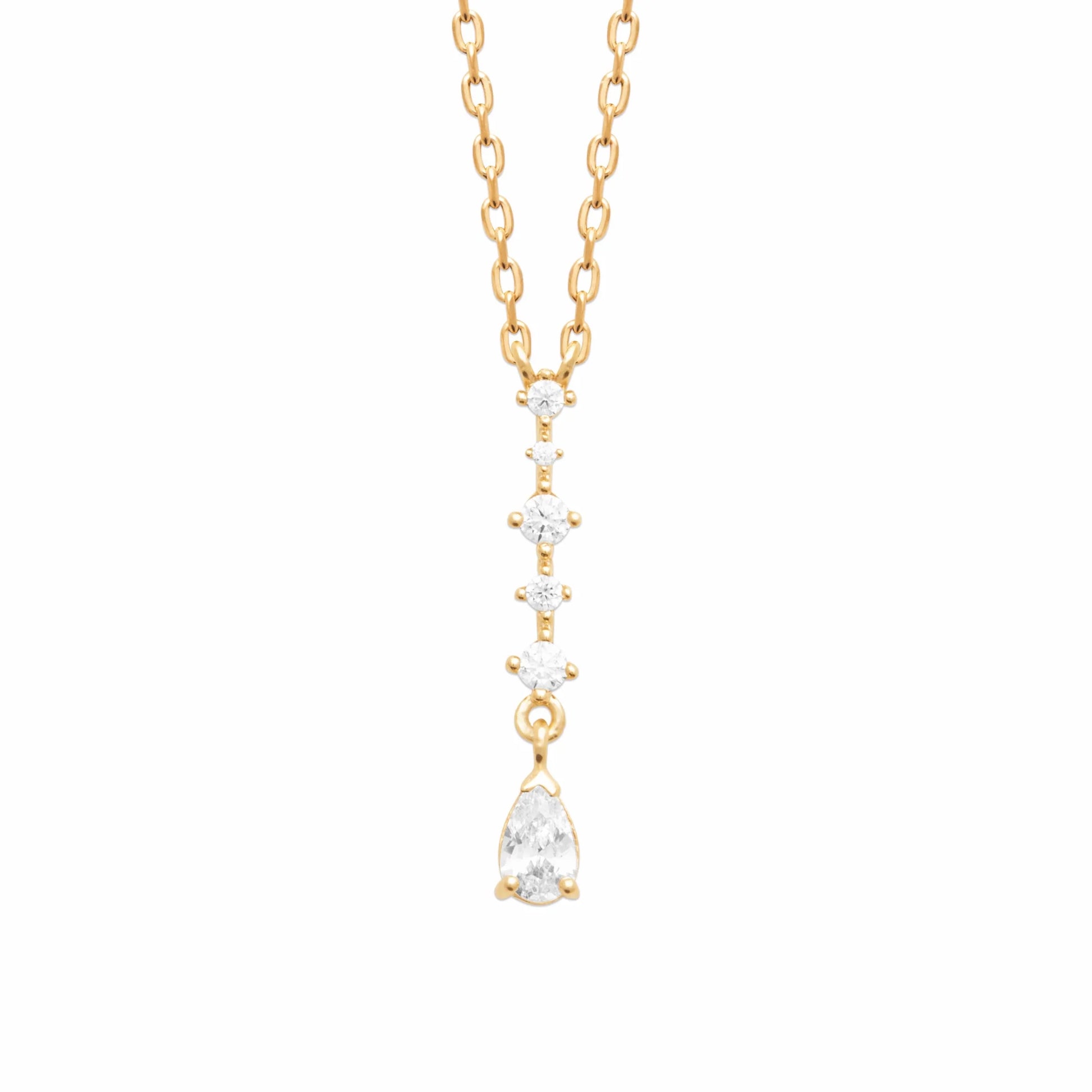 Elevate your elegance with the Collateral Beauty Necklace from Burren Jewellery. Crafted with a lustrous 18k gold plate, this classical drop necklace adds a timeless touch to any outfit. Its refined design effortlessly enhances your style, making it ideal for both everyday wear and special occasions.