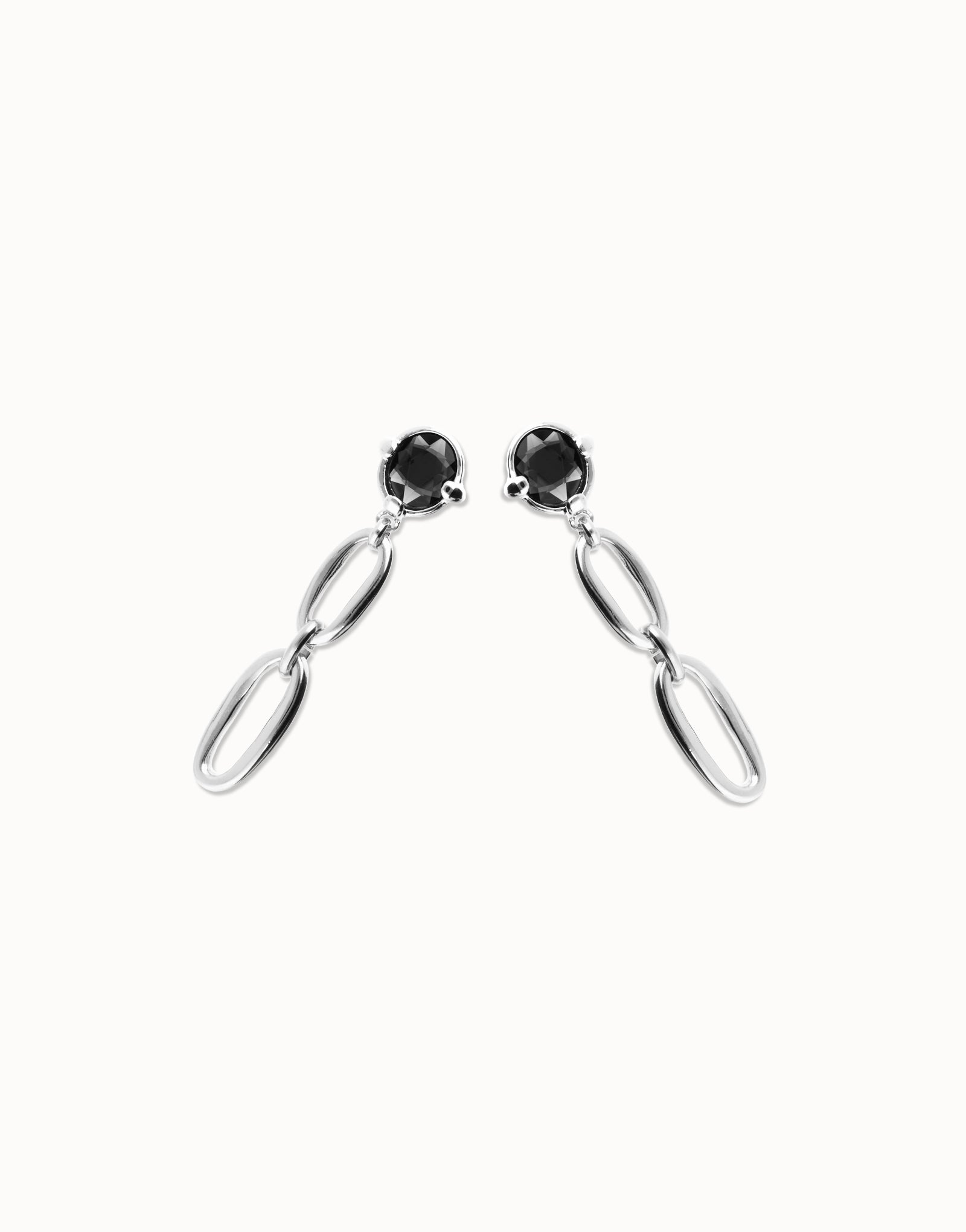 Drop earrings with faceted black crystal and links