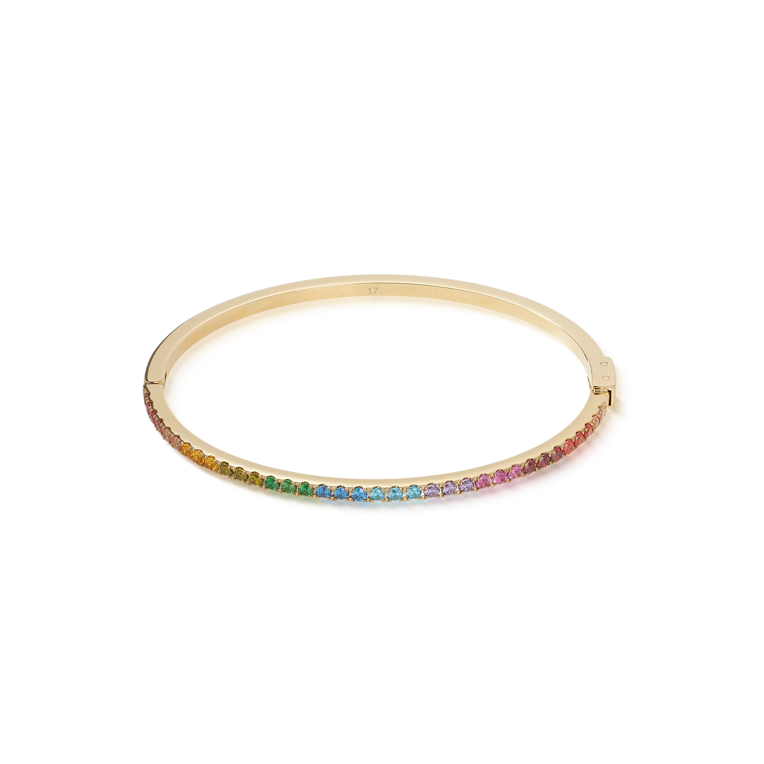 The Couer de Lion Eternal Love bangle in gold features a stunning array of rainbow-coloured stones, expertly arranged to create a vibrant, elegant design. Crafted with precision, this bangle balances timeless sophistication with a playful burst of colour, making it a versatile piece suitable for both everyday wear and special occasions. Its high-quality materials ensure lasting shine and durability.