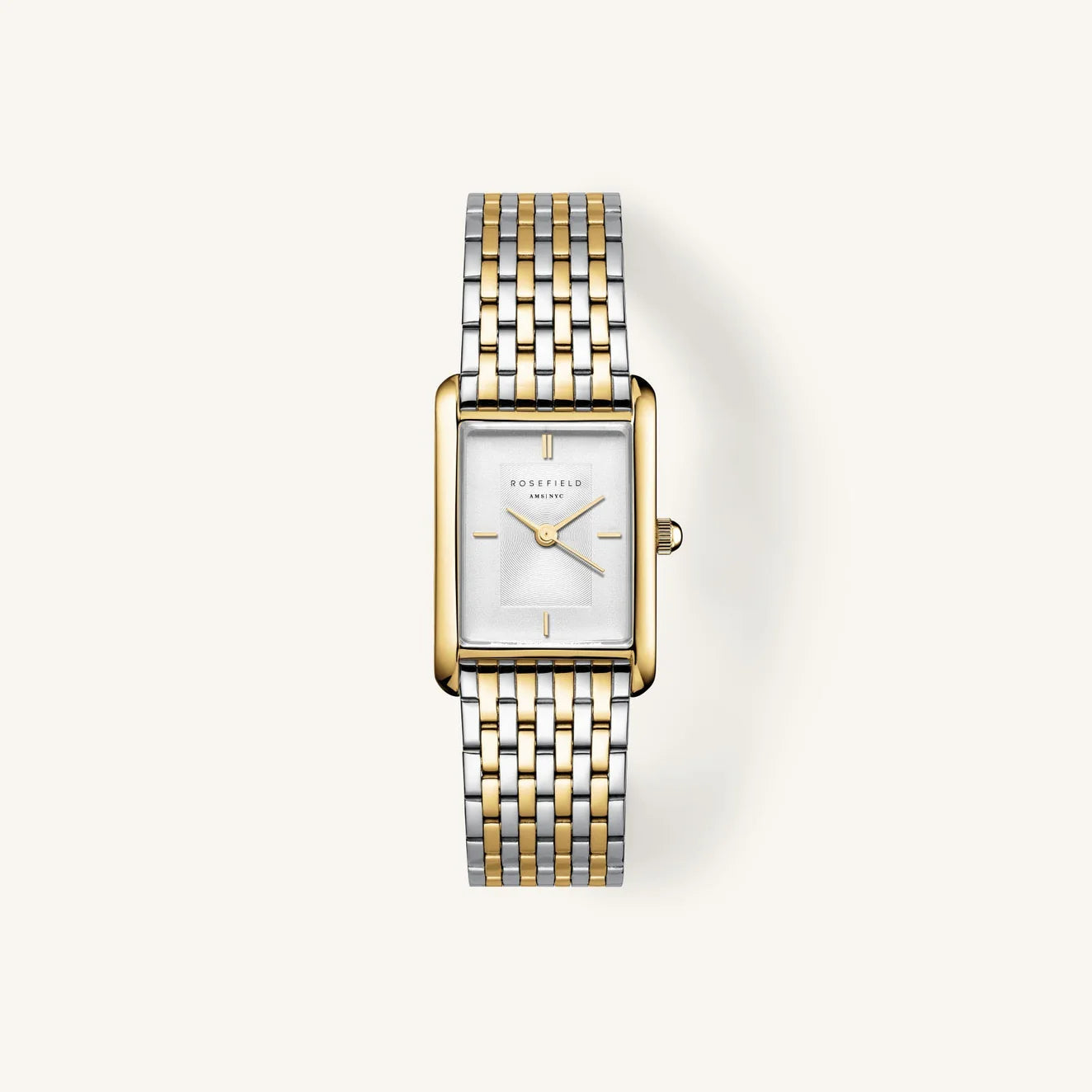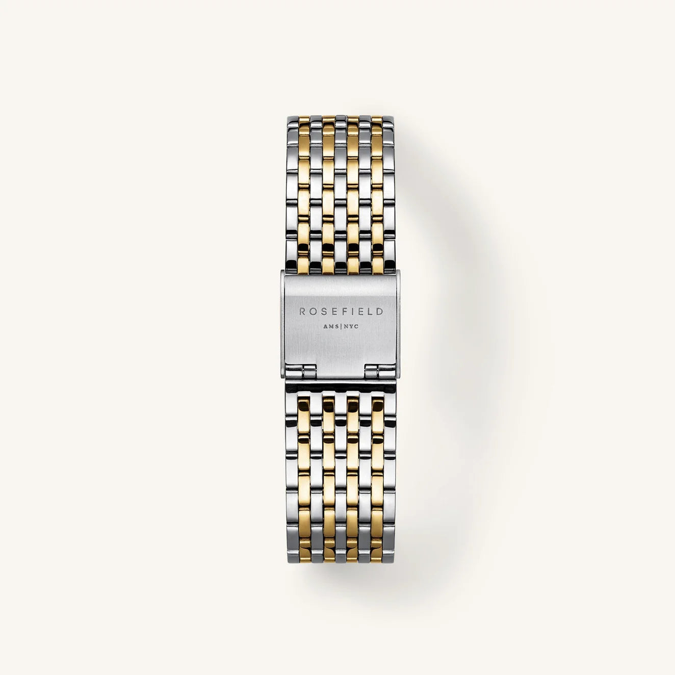 The Heirloom is a brand-new style, from the case to the dial and strap. The rectangular thicker case brings a touch of sophistication, while the dual finishes on the dial add a modern flair. The strap's mini links bring in a feminine touch to your look and are easy to adjust to any wrist with sliding closure.