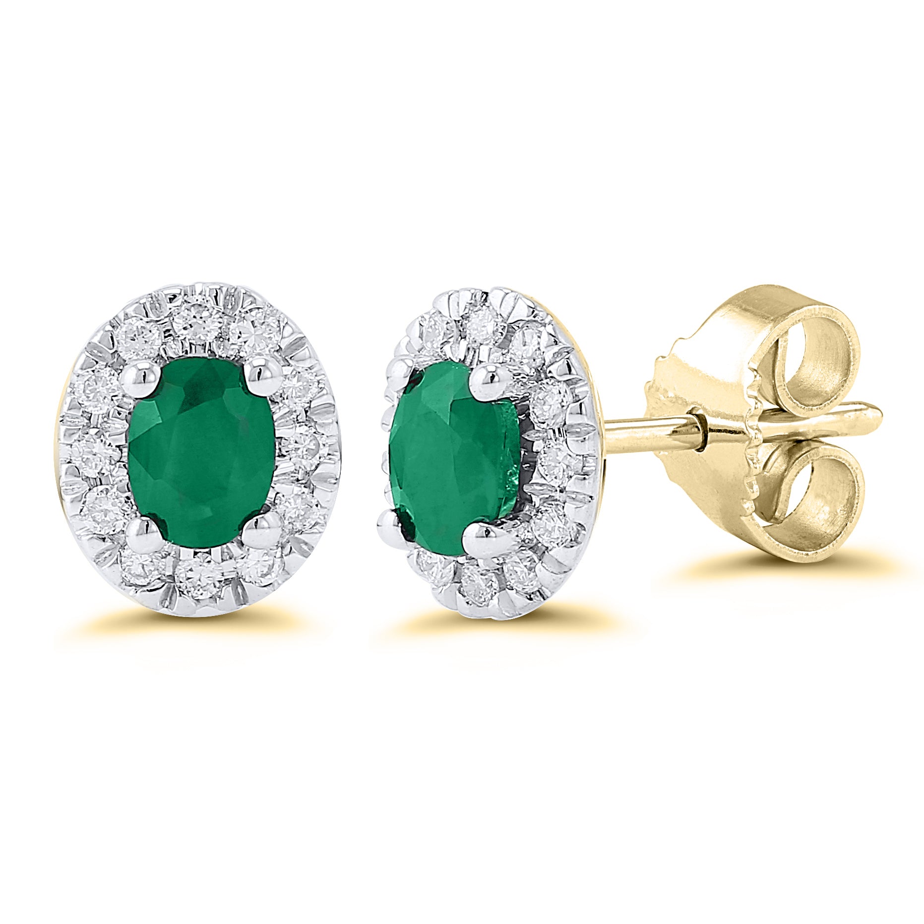 Oval cut colour stone with a halo of brilliant cut diamonds in a claw setting.