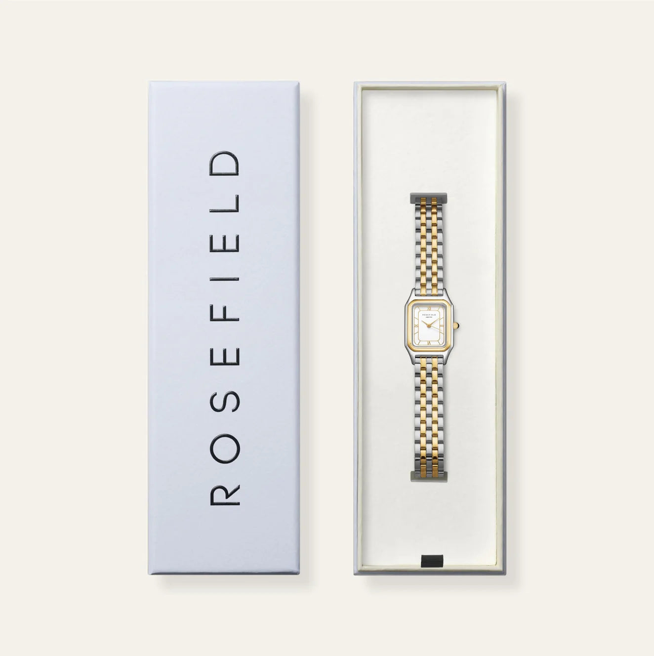 Rosefield's Ivy collection exemplifies refined minimalism with its distinctive two-tone case design. This ladies' watch combines a white dial with polished and brushed stainless steel elements, delivering understated elegance suitable for both professional and casual settings. The duotone finish adds visual depth while maintaining the brand's signature clean aesthetic. Precision quartz movement ensures reliable timekeeping, while the refined proportions make it a versatile accessory that complements any wardrobe.