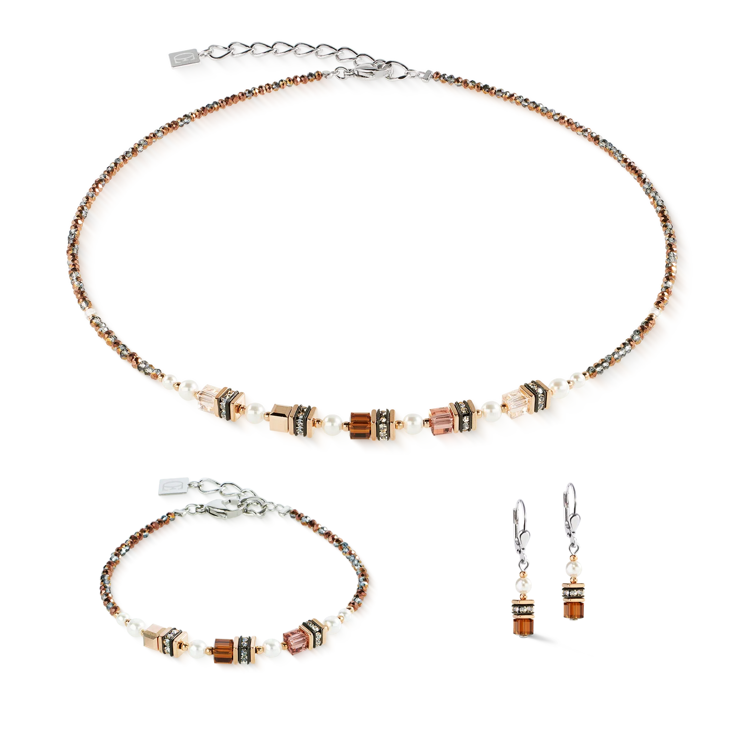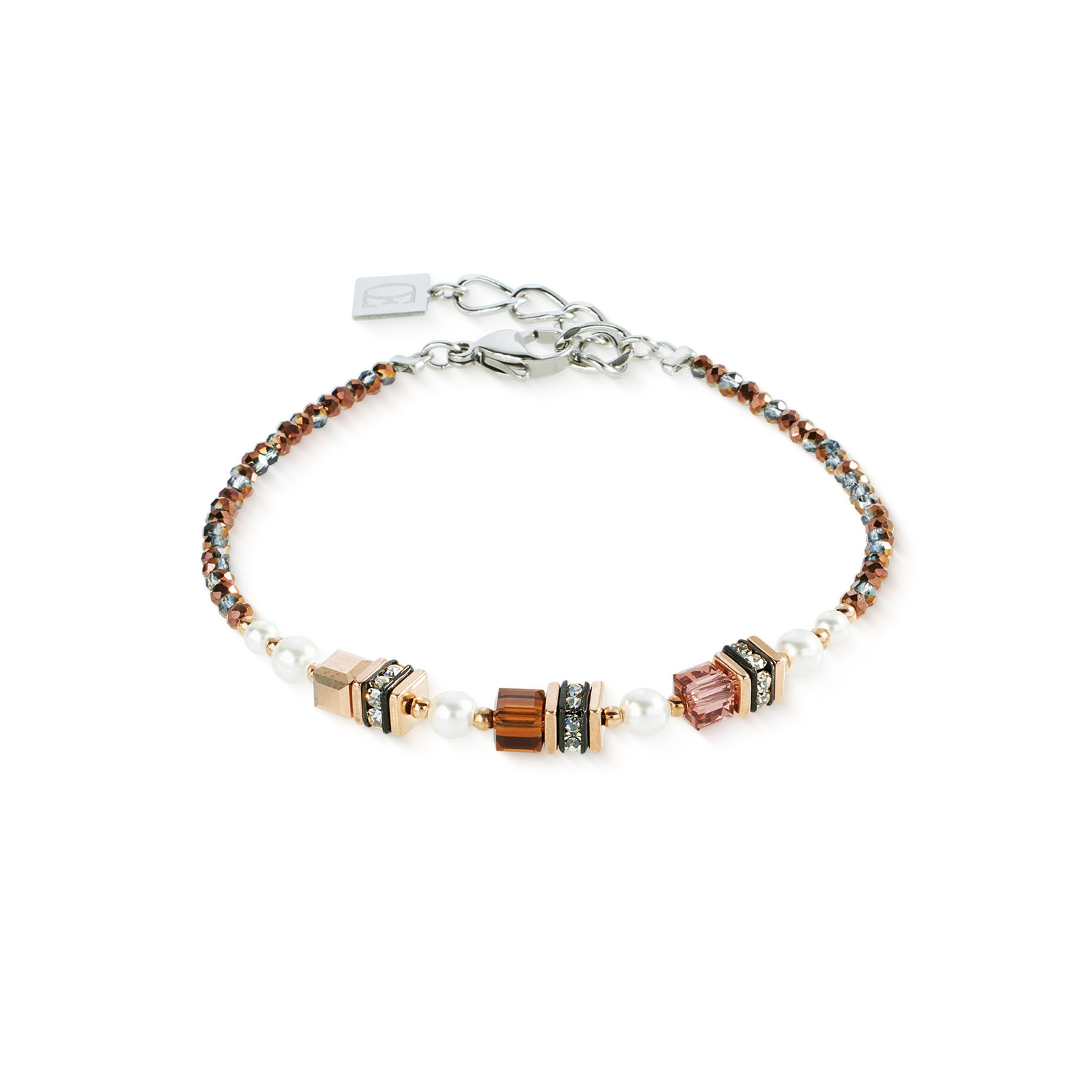 The Sparkling Princess bracelet in Mocha Mousse combines subtle brown tones with elegant rose gold, cool silver, graphic cubes and fine pearls - a harmonious mix that can be worn on its own or as a set with earrings and a necklace. The design is light, modern and goes with almost anything - from neutral to elegant.
